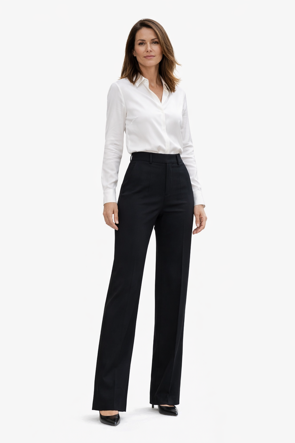 Elegante y versátil, este pantalón de corte recto y talle alto estiliza la figura y aporta un acabado sofisticado a cualquier look. Confeccionado en tejido fluido de caída impecable, ofrece comodidad durante todo el día sin perder estructura. Perfecto para la oficina, reuniones o outfits formales con un toque moderno. Combínalo con blusas, camisas o blazers para un conjunto profesional y atemporal.